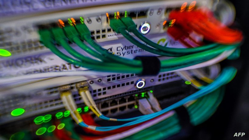 A photo shows servers specialised in cyber security during the 10th International Cybersecurity Forum in Lille on January 23, 2018. (Photo by PHILIPPE HUGUEN / AFP)