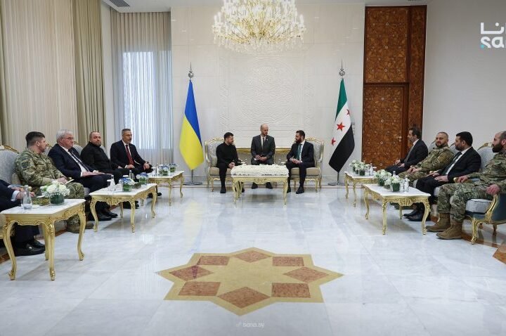 دمشق-سانا استقبل الرئيس أحمد الشرع في قصر الشعب بدمشق اليوم الأحد، الرئيس الأوكراني فولوديمير زيلينسكي، بحضور وفد وزاري...